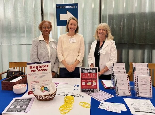 Always a special experience to meet, greet, and congratulate new US citizens! They usually make a beeline for the table with voter registration materials, and engage with our knowledgeable, enthusiastic volunteers!