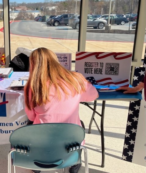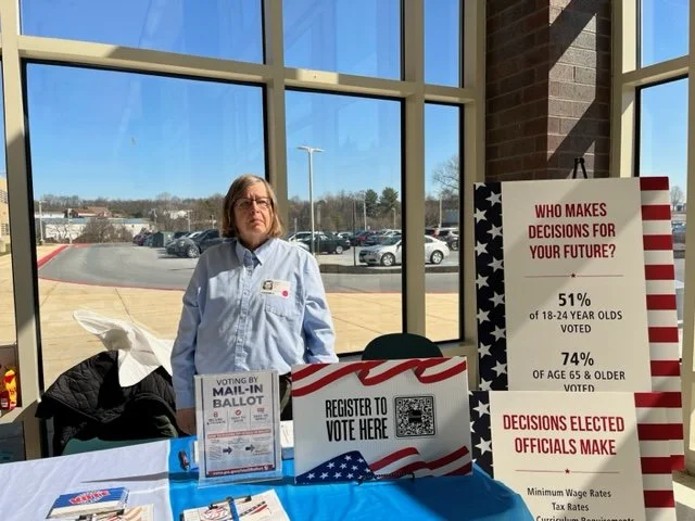 In late March, LWV HA members, Sue and Deb, visited with 16 students, 5 of whom completed voter registration forms. 1 individual accepted a form to complete on their own. 4 students signed up for GOTV (Get Out The Vote) reminders. 5 Vote411 voting plan cards were taken!