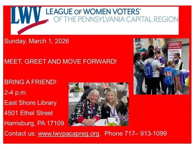 LWV PA Capital Region will have a voter registration drive and join 50+ vendors on-hand at this FREE event. Attendees can enjoy snacks, participate in fun giveaways, and win door prizes throughout the day. Whether you're interested in learning about healthcare options, social programs, or other resources, this event is the perfect opportunity to get informed and engaged.